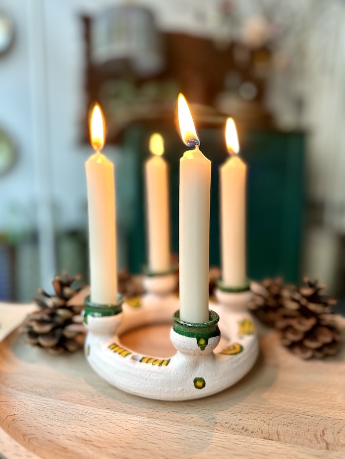 The old traditional white ceramics of the Dracians are still only made in Romania by the Patru family from clay from the surrounding area. Each decoration has its own meaning. Evergreen fir branches symbolise life, waves represent the ups and downs of life and a simple dot symbolises Christianity.