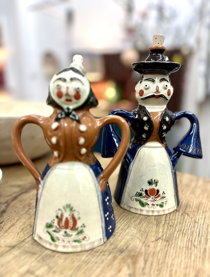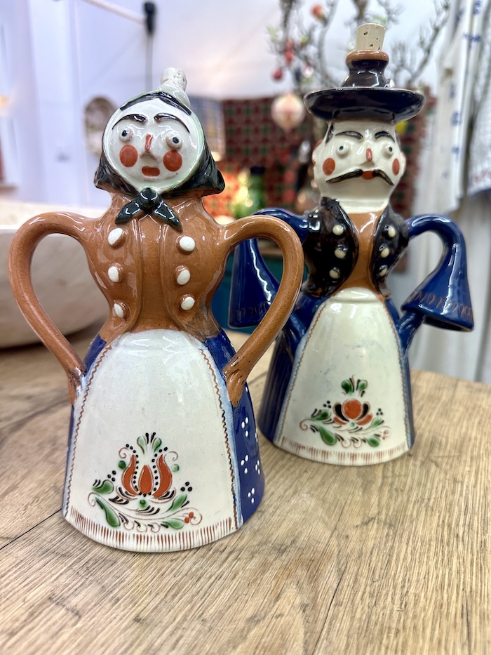 Pair of woman & men, bottles with cork for oil & vinegar, Schnaps and other high-proof alcohol