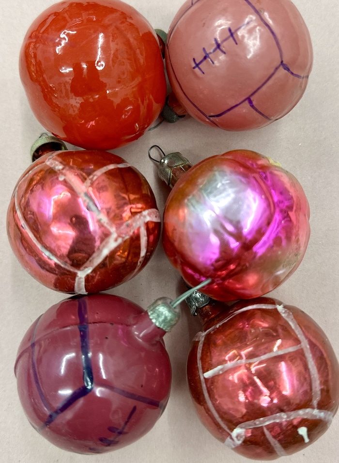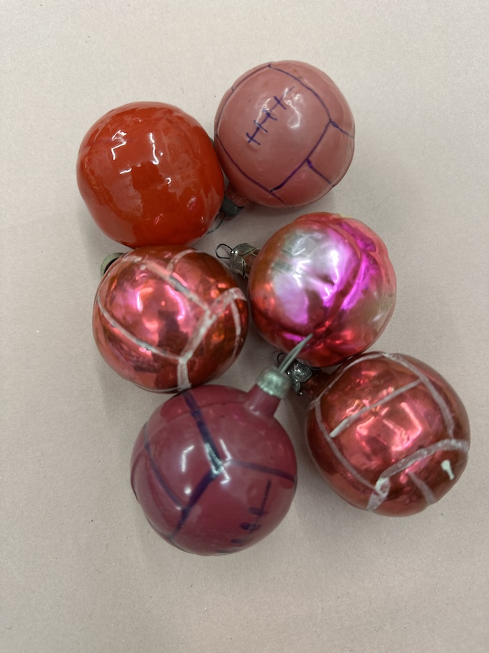 Since 1937, the Jolka Festival has been celebrated in Russia on New Year’s Day. Jolka stands in Russian for „fir tree”, which is splendidly decorated as a symbol of winter. Originally, the festival was intended as a substitute for the Christian Christmas, which the Soviets had banned in the October Revolution of 1917. Christmas with all its gifts was considered a capitalist feast for the wealthy bourgeoisie. The prohibition lasting until about 1935 when the New Year’s tree was revived for the children, and celebrated with Soviet ornaments and decorations. Ornaments of a religious nature were not allowed. The themes of the small glass objects were as secular as the occasion of the festival. There were no angels or Christ children, but things that surrounded people, from traffic lights and cars to flower vases, soccer balls and teapots. In addition, children and grandmothers, fairy-tale characters and again and again Ded Moroz, the Russian Santa Claus, and his granddaughter Snegurochka. And what could not be missing from any New Year tree was a clock, with the hands on just before twelve. Very important was also the department of fruits and vegetables, with garlic, pea pods and eggplant. Another theme complex dealt with the propaganda with hammer & sickle ornaments, soldiers and submarines. And with the world’s first space flight of the Soviets, cosmonauts and rockets became en vogue.