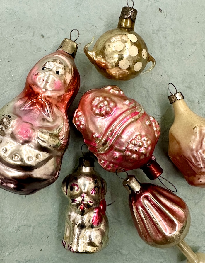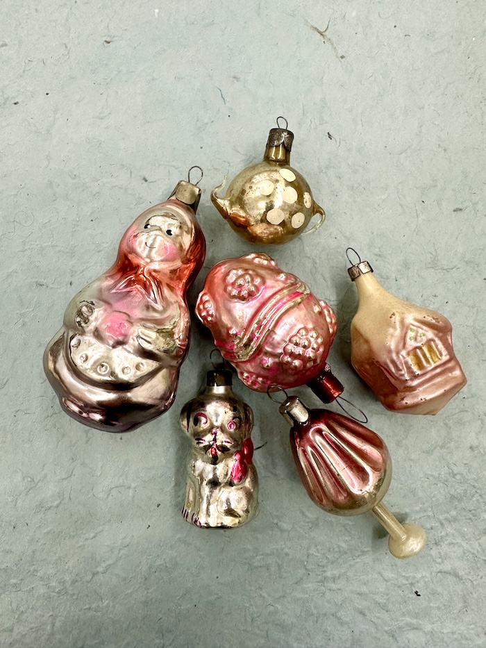 Since 1937, the Jolka Festival has been celebrated in Russia on New Year’s Day. Jolka stands in Russian for „fir tree”, which is splendidly decorated as a symbol of winter. Originally, the festival was intended as a substitute for the Christian Christmas, which the Soviets had banned in the October Revolution of 1917. Christmas with all its gifts was considered a capitalist feast for the wealthy bourgeoisie. The prohibition lasting until about 1935 when the New Year’s tree was revived for the children, and celebrated with Soviet ornaments and decorations. Ornaments of a religious nature were not allowed. The themes of the small glass objects were as secular as the occasion of the festival. There were no angels or Christ children, but things that surrounded people, from traffic lights and cars to flower vases, soccer balls and teapots. In addition, children and grandmothers, fairy-tale characters and again and again Ded Moroz, the Russian Santa Claus, and his granddaughter Snegurochka. And what could not be missing from any New Year tree was a clock, with the hands on just before twelve. Very important was also the department of fruits and vegetables, with garlic, pea pods and eggplant. Another theme complex dealt with the propaganda with hammer & sickle ornaments, soldiers and submarines. And with the world’s first space flight of the Soviets, cosmonauts and rockets became en vogue.