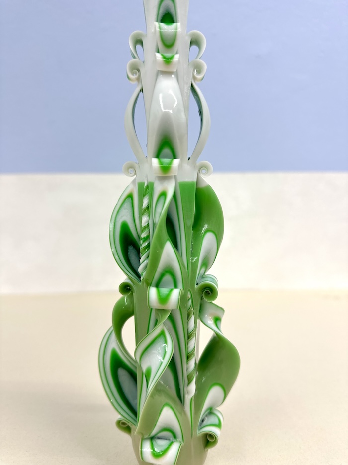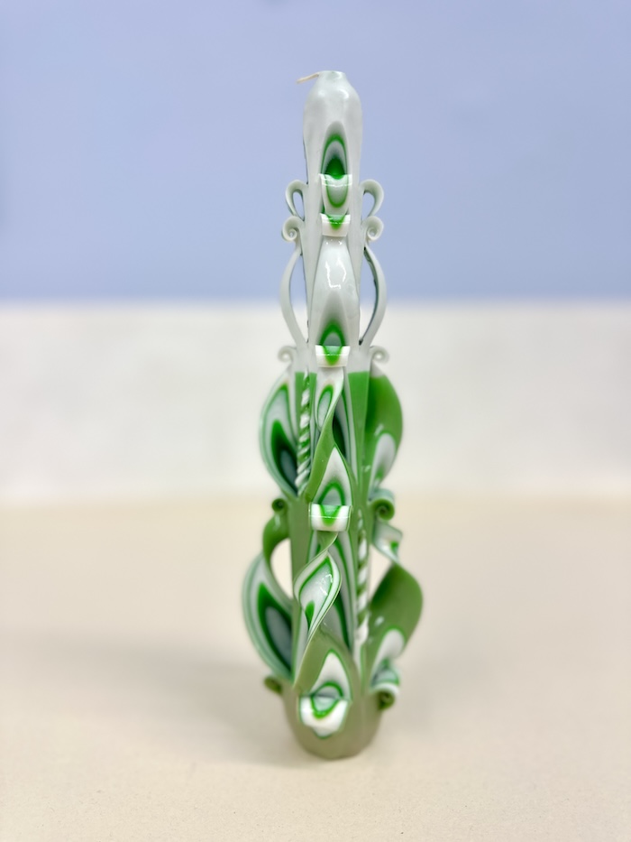 Tapper candle in green & white from Ukraine