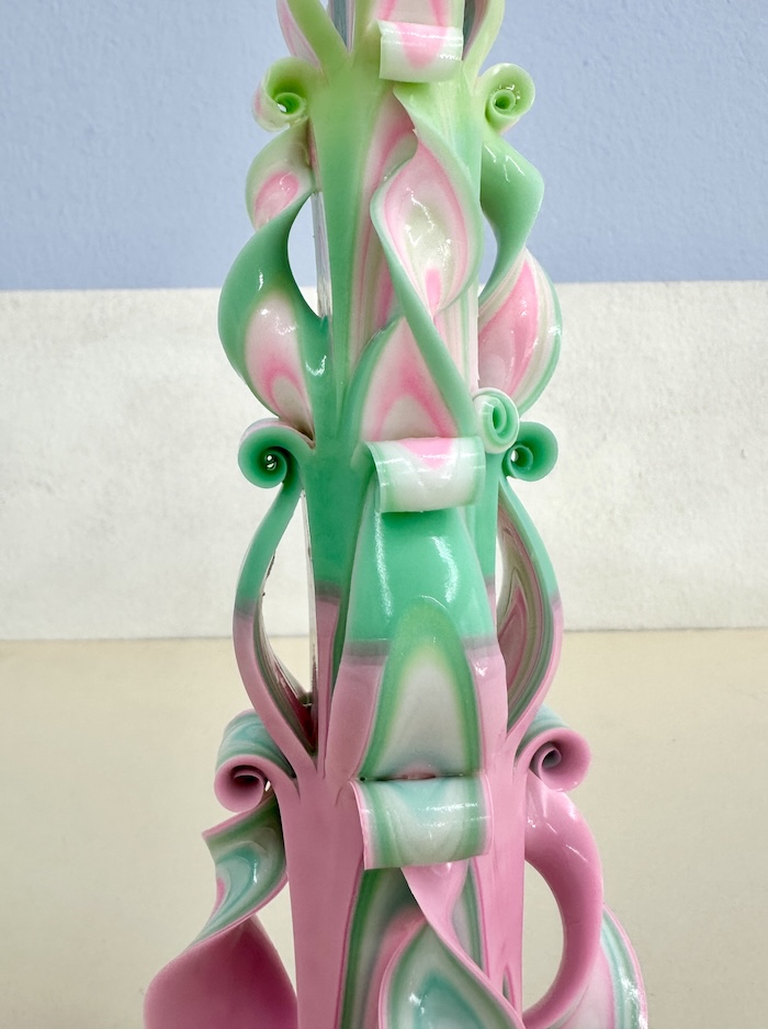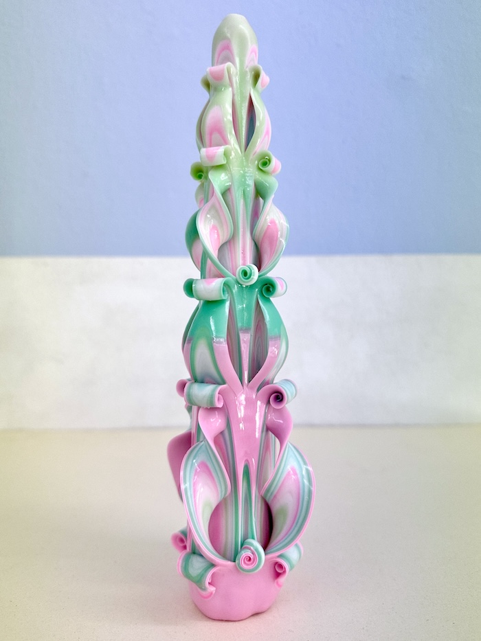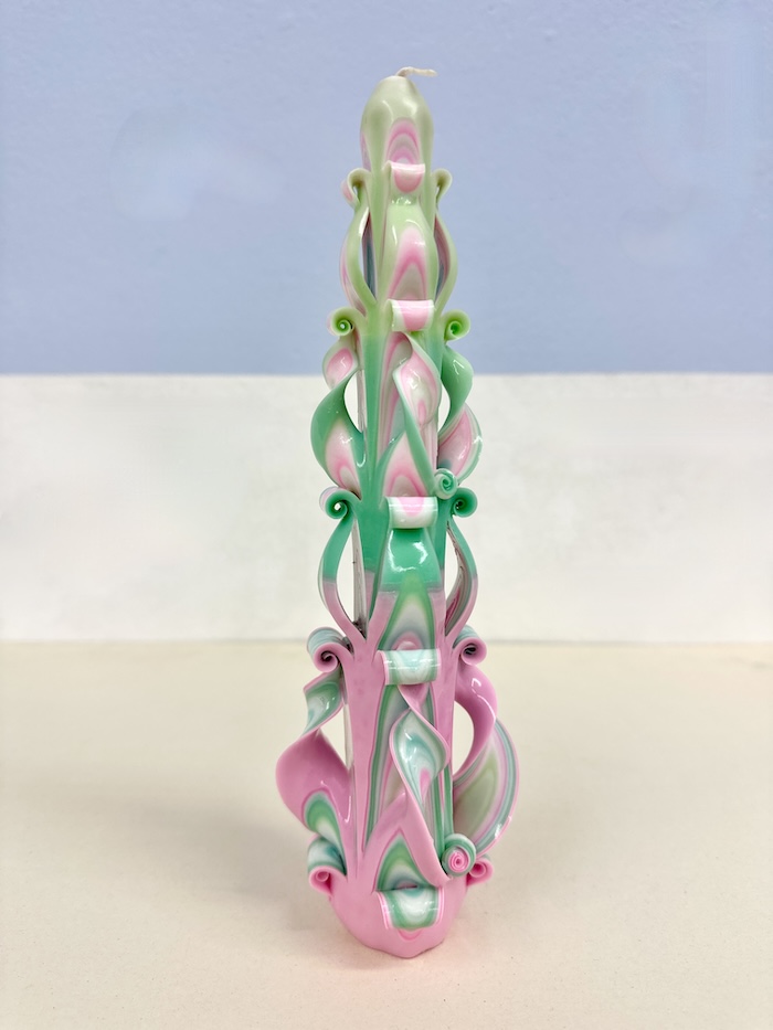 Tapper candle in pink/green/white from Ukraine