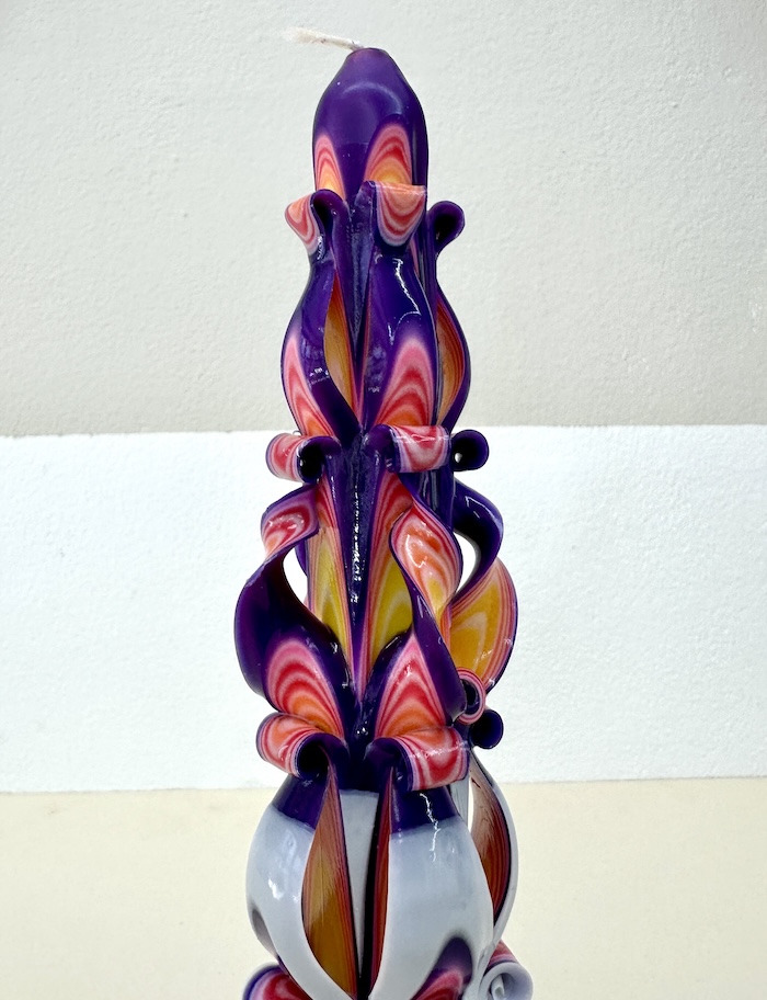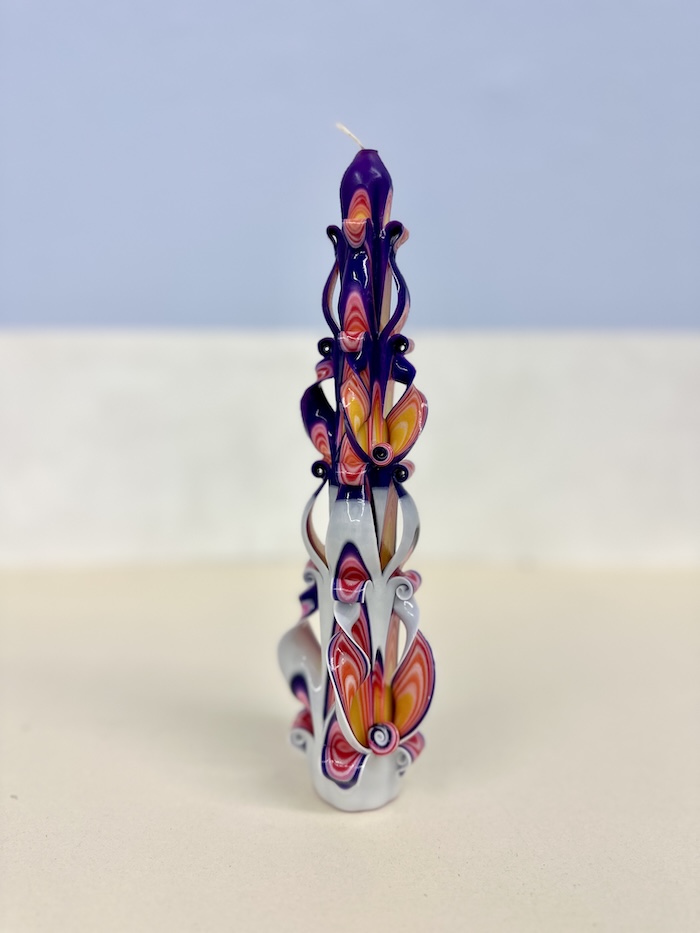 Tapper candle in purple/yellow/white from Ukraine