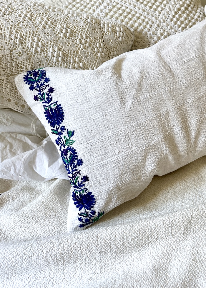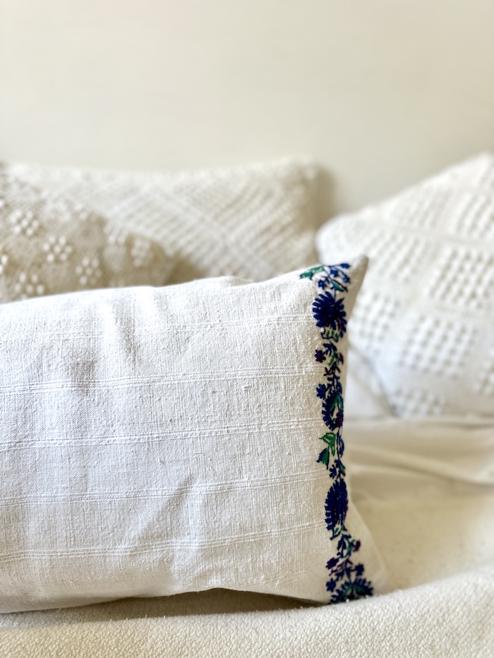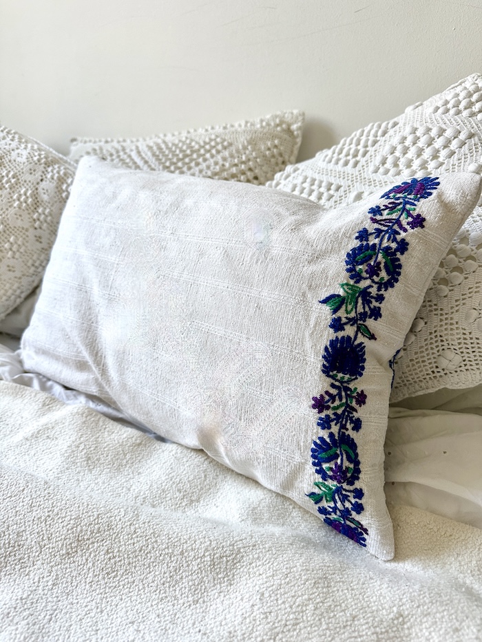Textile from 3rd quarter of 20th century 100 % linen, embroidery by hand, both sides with embroidery. (no face & back of the pillow – here we have 2 faces)