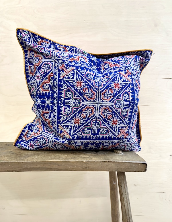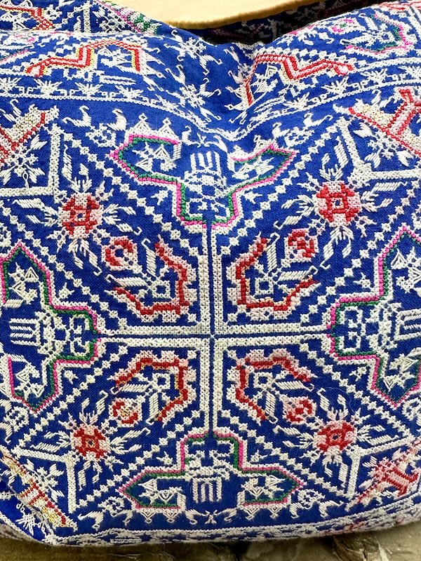 Handstiched cotton, it was a piece of traditional clothing worn by the Hmong people from Yunnan.