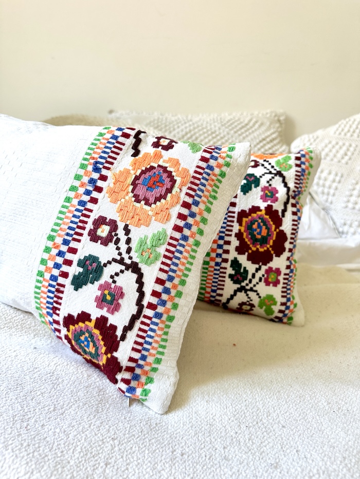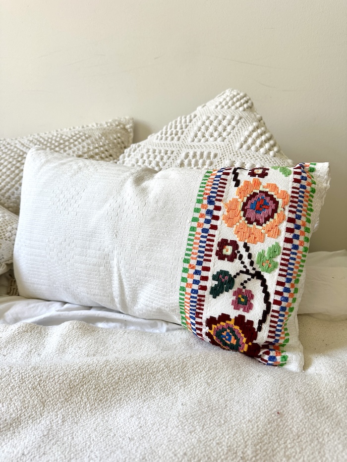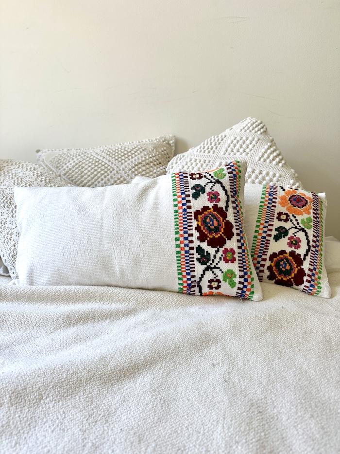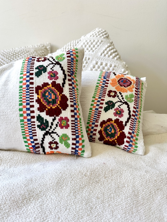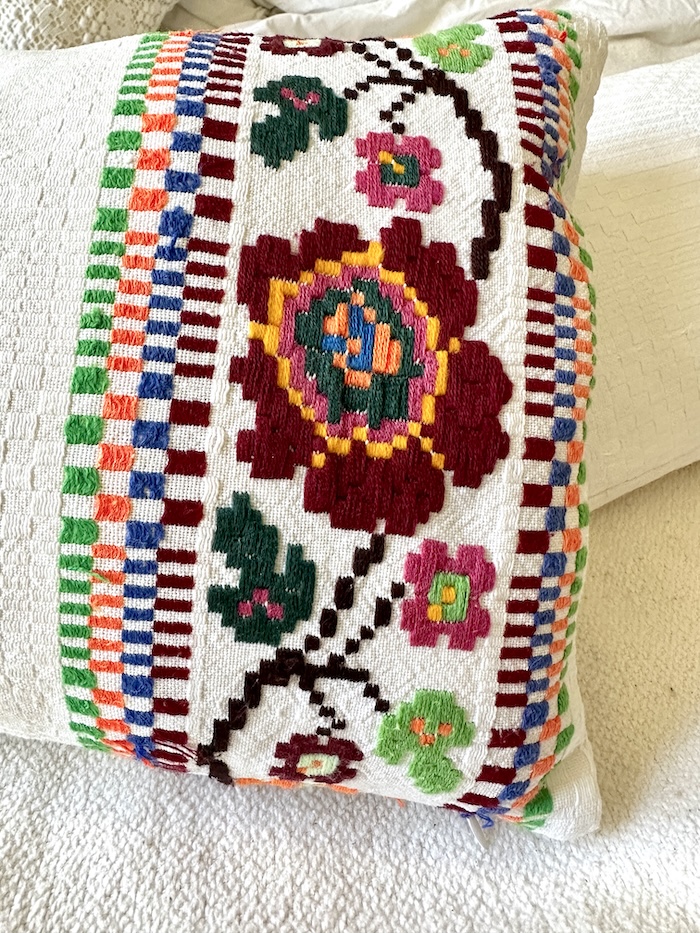 Pillow, made from an old handwoven blanket from Romania, Maramures.