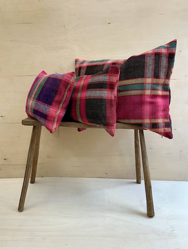 Cushion made from contemporary handwoven textile from Maramures, Romania