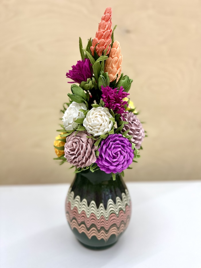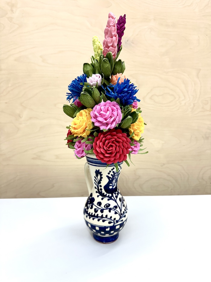 Paper plays a central role in Polish folklore. There are paper cut-outs (wycinanki), mobiles made of straw and paper (pajaki), bouquets of flowers (kwiaty z papieru) and Christmas cribs from Krakow (szopska). At the beginning of the 19th century, paper was still a luxury item and farmers worked with straw, fabric or leather. With the industrialisation of paper production, the price dropped and coloured paper became something that even poor peasant families in Galicia could afford.